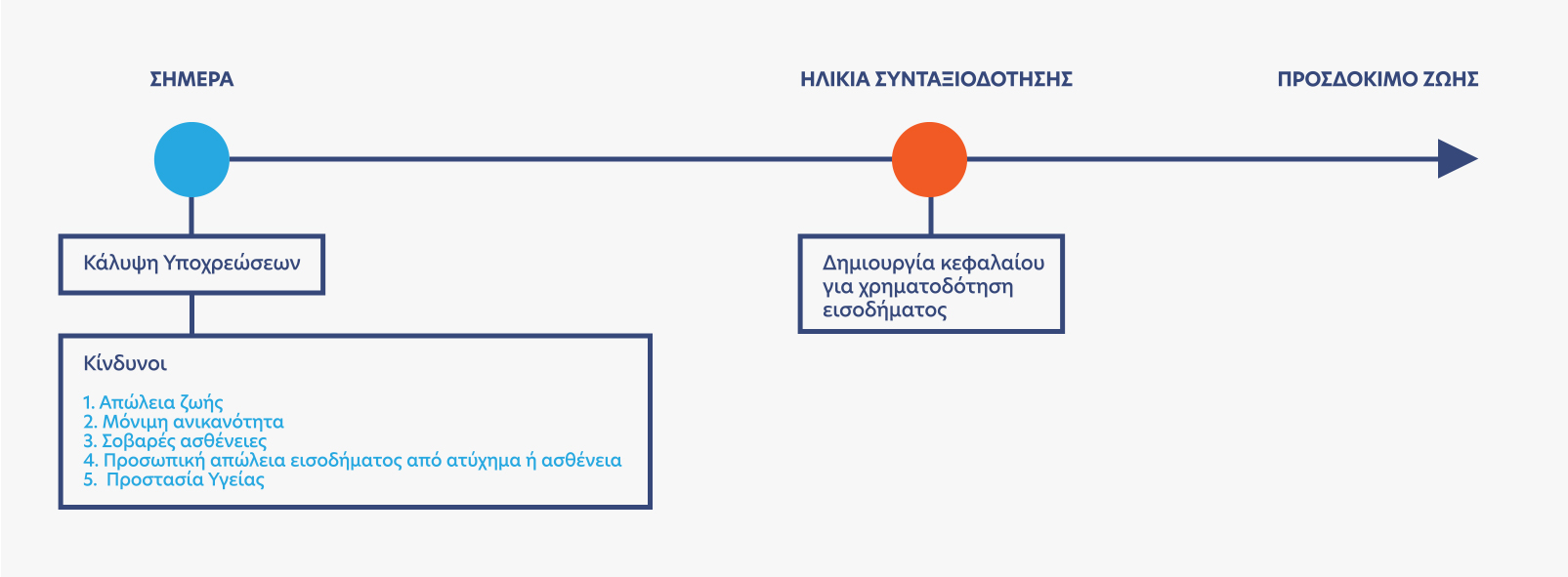 Οι ανάγκες εξελίσσονται όπως και ο ίδιος ο άνθρωπος. Είναι λοιπόν πολύ σημαντικό να κάνει κάποιος "προβολή της ζωής του" στο μέλλον και προδραστικά να αναλύσει τυχόν μελλοντικούς κινδύνους.